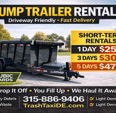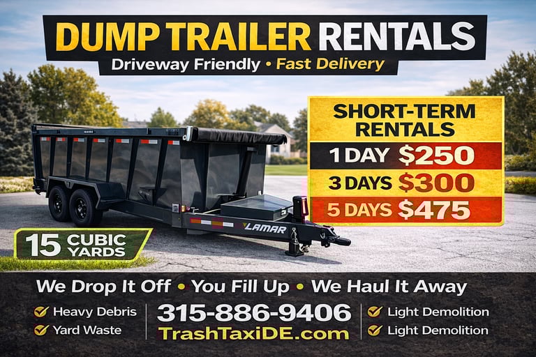 Driveway Safe Dumpsters LLC is a locally owned and operated company providing dumpster rentals, lawn maintenance, junk removal, property cleanouts, demolition services, and landscape material delivery in Delaware. We proudly serve homeowners and contractors throughout Dover, Milford, Harrington, Magnolia, Camden, Felton, and surrounding Kent and Sussex County communities.